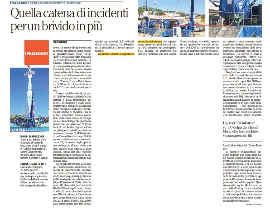 Sicurezza delle attrazioni: un incidente in un luna park ha portato i media ad occuparsi di questo tema. La stampa e la televisione hanno voluto approfondire questo tema, ed è stato necessario mettersi in gioco.